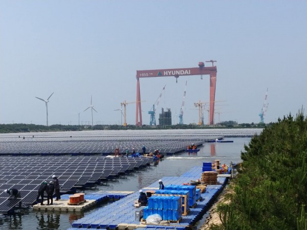 군산 유수지 수상태양광 콘크리트앵커 작업 > 시공사례