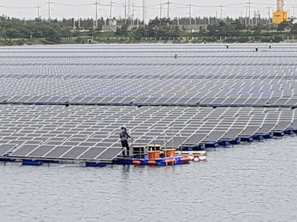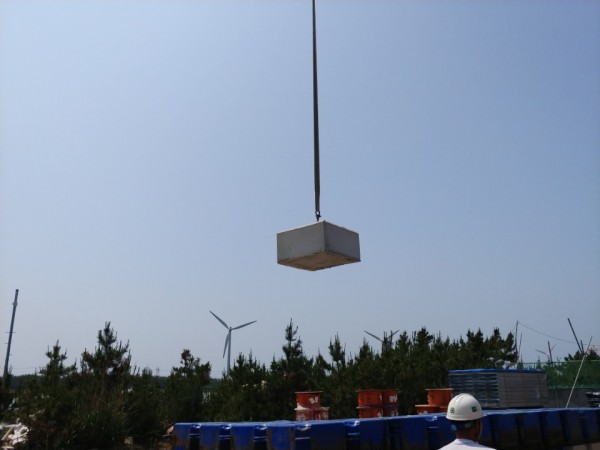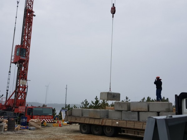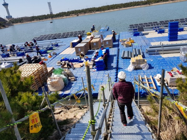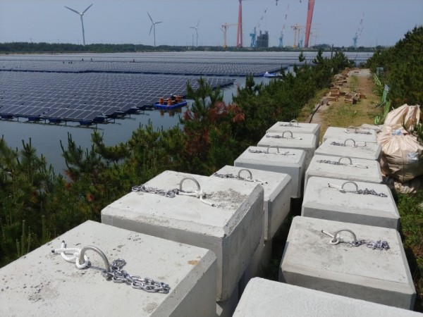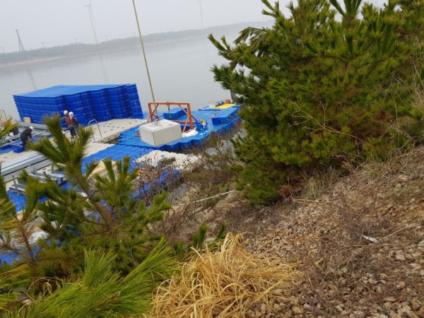 군산 유수지 수상태양광 콘크리트앵커 작업